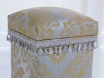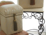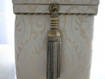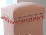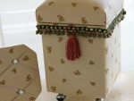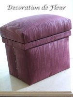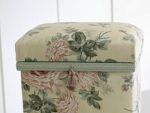 良質の杉板を材料に職人が1つづつ丁寧に手作りで仕上げた茶箱に布やクッション材を貼り、装飾をほどこすことによって高級感がある収納BOXやスツールのような家具が完成します。