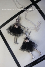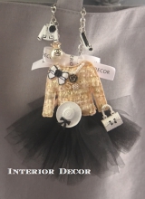 ツイードのジャケットオブジェにチュールのスカートをつけた、フェミニンなバッグチャームを制作します。