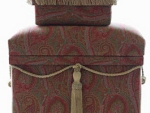 良質の杉板を材料に職人が1つづつ丁寧に手作りで仕上げた茶箱に布やクッション材を貼り、装飾をほどこすことによって高級感がある収納BOXやスツールのような家具が完成します。